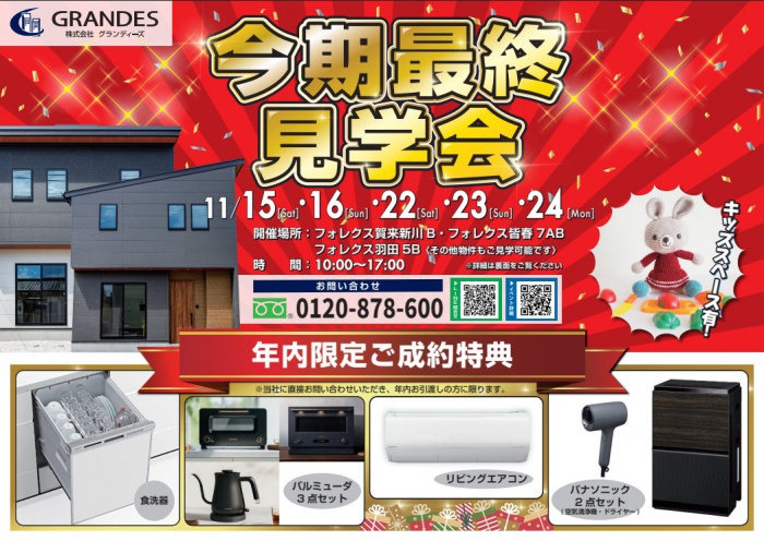 【ご成約特典付き】今期最終見学会🏠